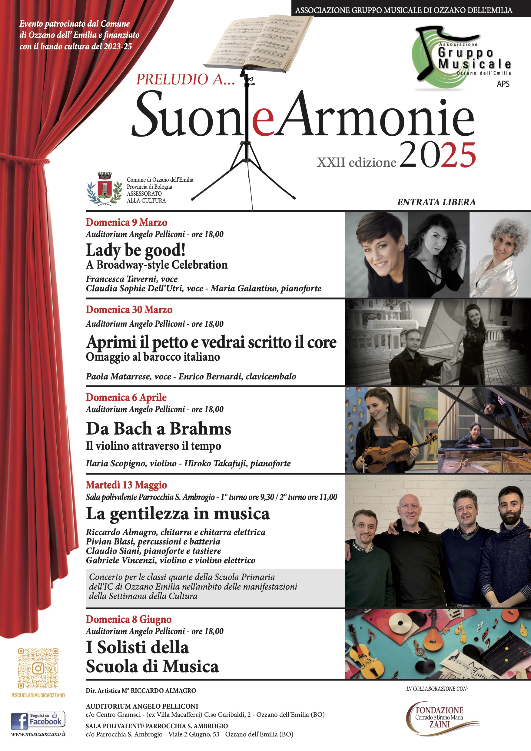 - 9/3/25 h.18.00 PRELUDIO A … SUONI E ARMONIE XXII - Lady be good A Broadway-style Celebration - Associazione Gruppo Musicale - Corso Garibaldi, 2 Auditorium Pelliconi info 3927434908 - musicaozzano@gmail.com - Entrata libera