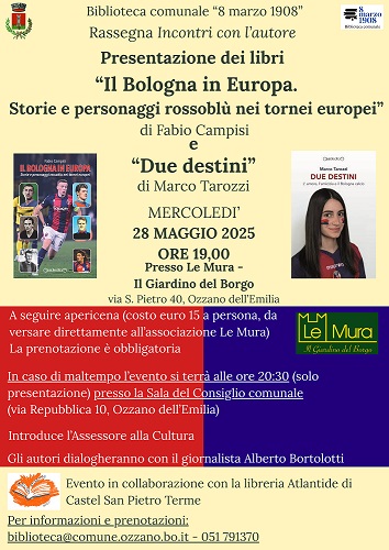 Mercoledì 28 maggio alle ore 19,00 presentazione dei due opere dedicate al Bologna Calcio.