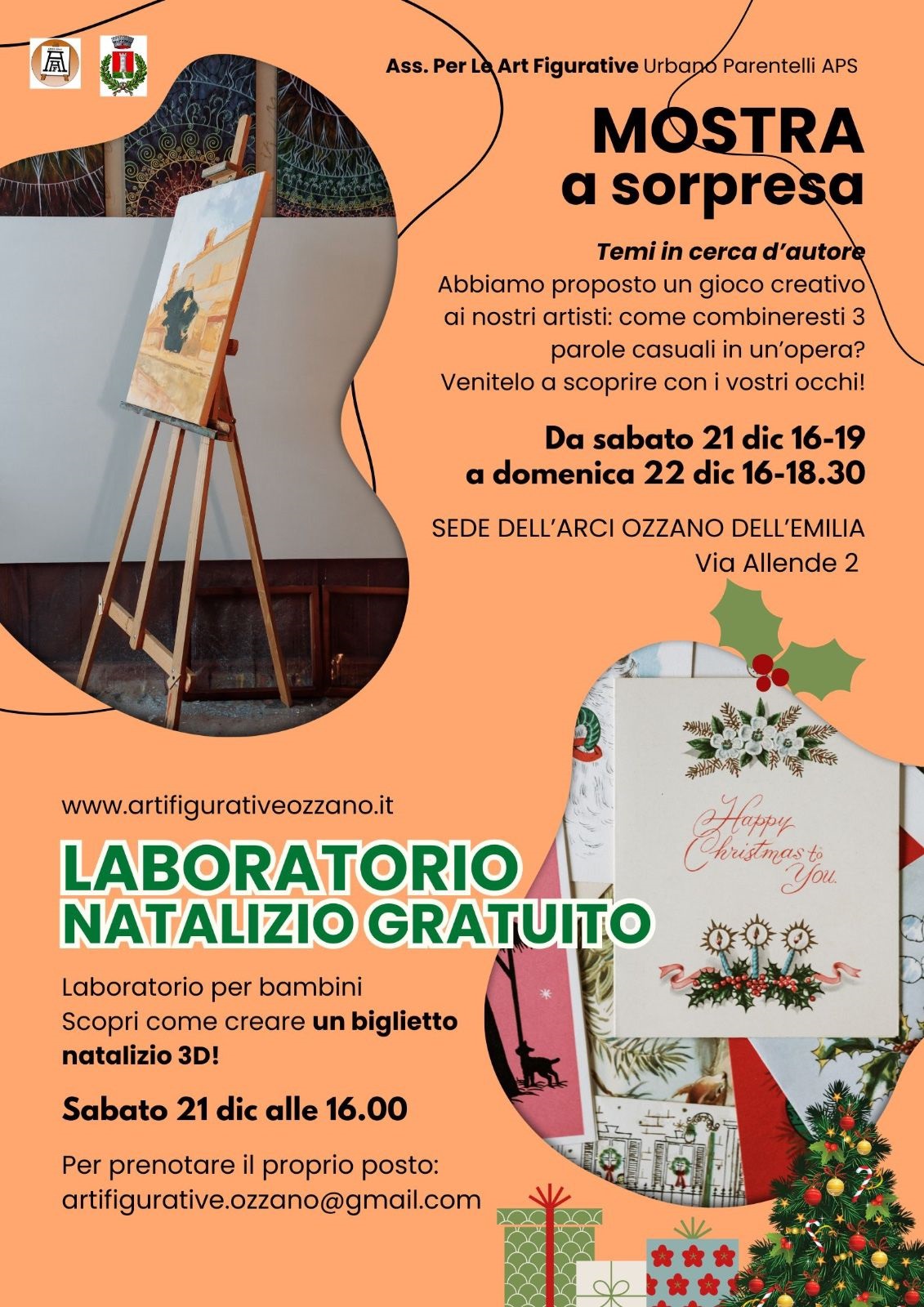 ARCI Ozzano e l'Associazione "Per le arti figurative Urbano Parentelli" organizzano per il 21 e 22 dicembre due eventi dedicati al Natale, presso sede la ARCI Ozzano (via Allende, 2):