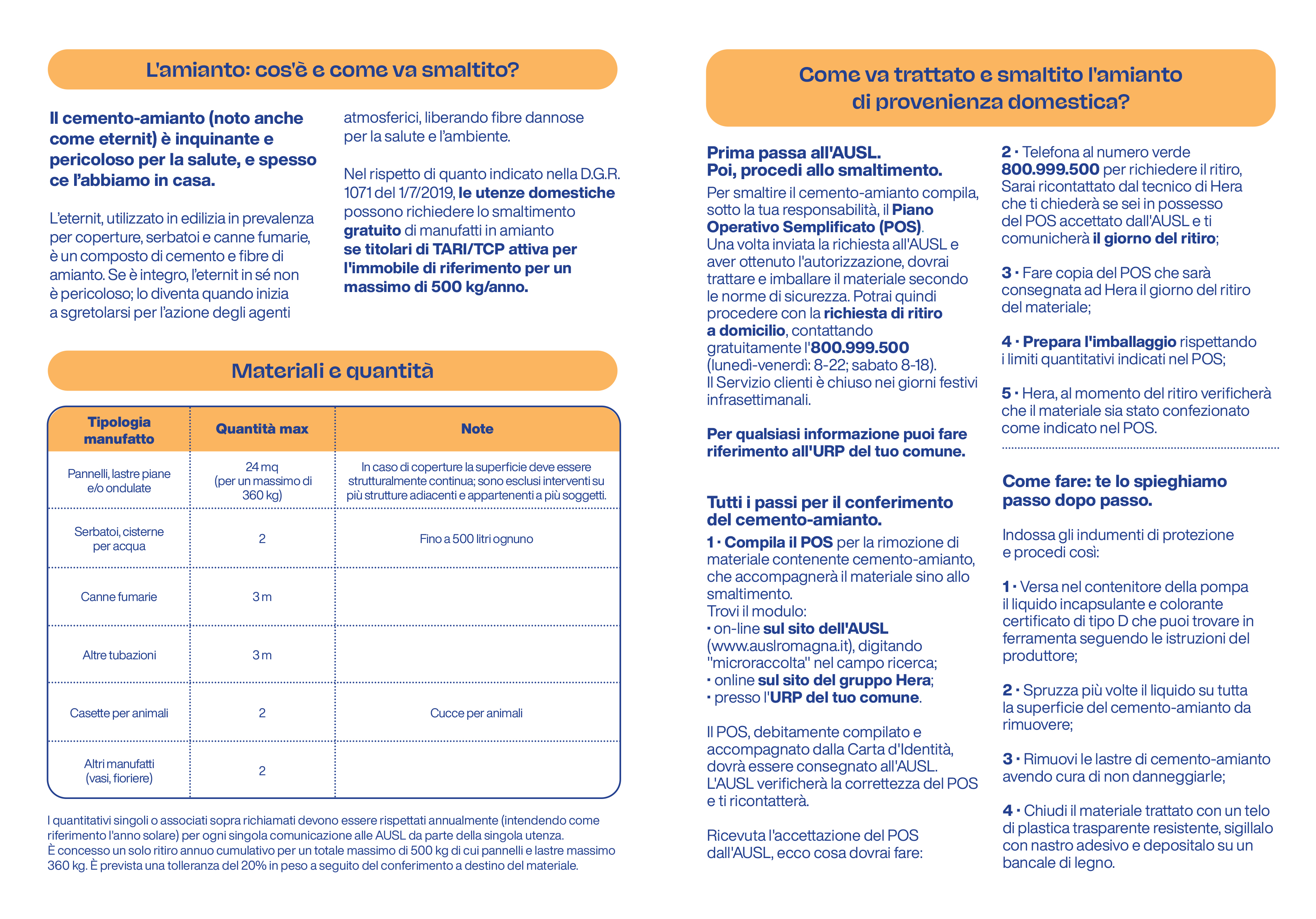Il servizio è dedicato ai cittadini che eccezionalmente si trovino nelle condizioni di dover smaltire questi tipi di rifiuto in piccole quantità; le utenze non domestiche devono smaltire questi rifiuti secondo la normativa vigente in materia.