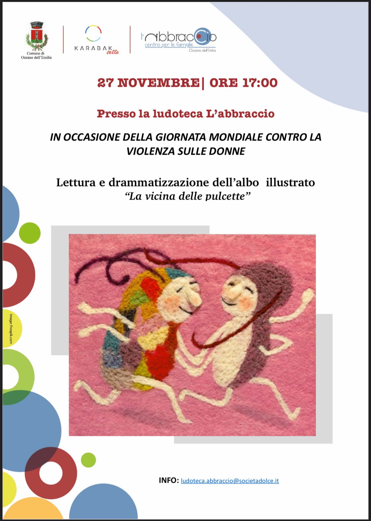 • 27/11/2025 dalle ore 17 alle ore 18 presso Ludoteca L’Abbraccio (via Cesare Maltoni, 22-Ozzano Emilia) - vedi grafica allegata