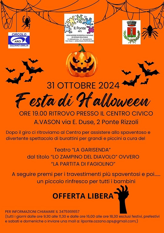 L'associazione 'Il Ponte' organizza 'La Notte di Halloween', una festa per tutti i bambini, sabato 31 ottobre presso il Centro civico "A. Vason"