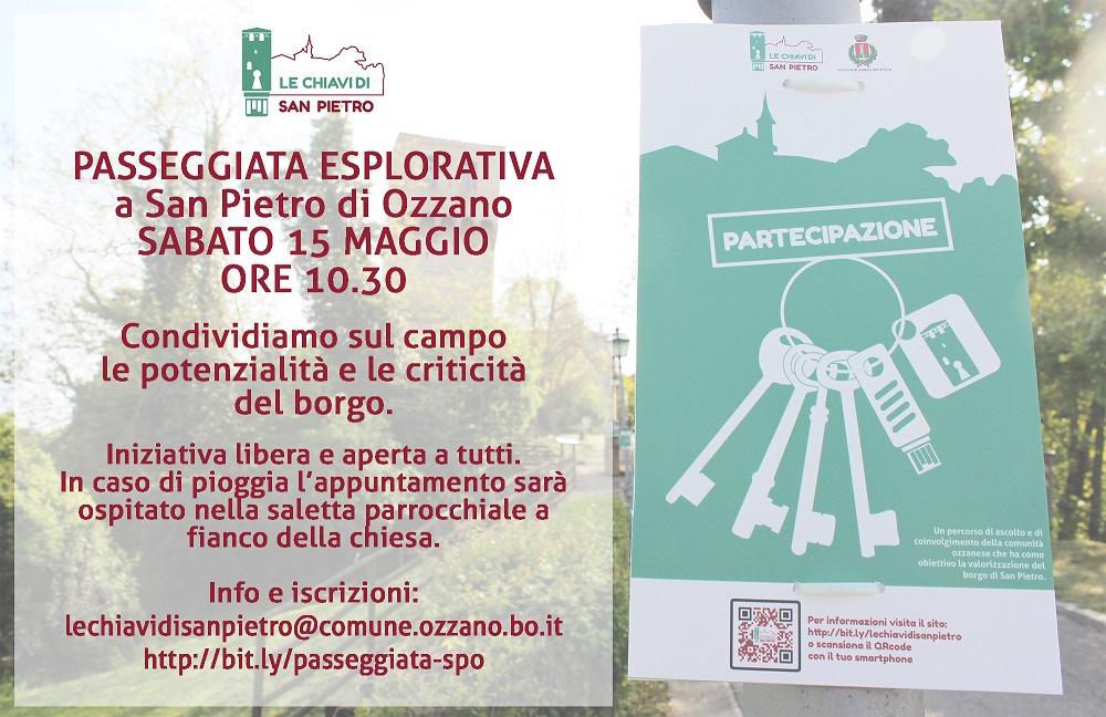 Martedì 22 giugno dalle 18 alle 20 nell’area verde nei pressi della Torre del borgo di San Pietro di Ozzano, si terrà il prossimo appuntamento del percorso partecipativo "Le Chiavi di San Pietro".