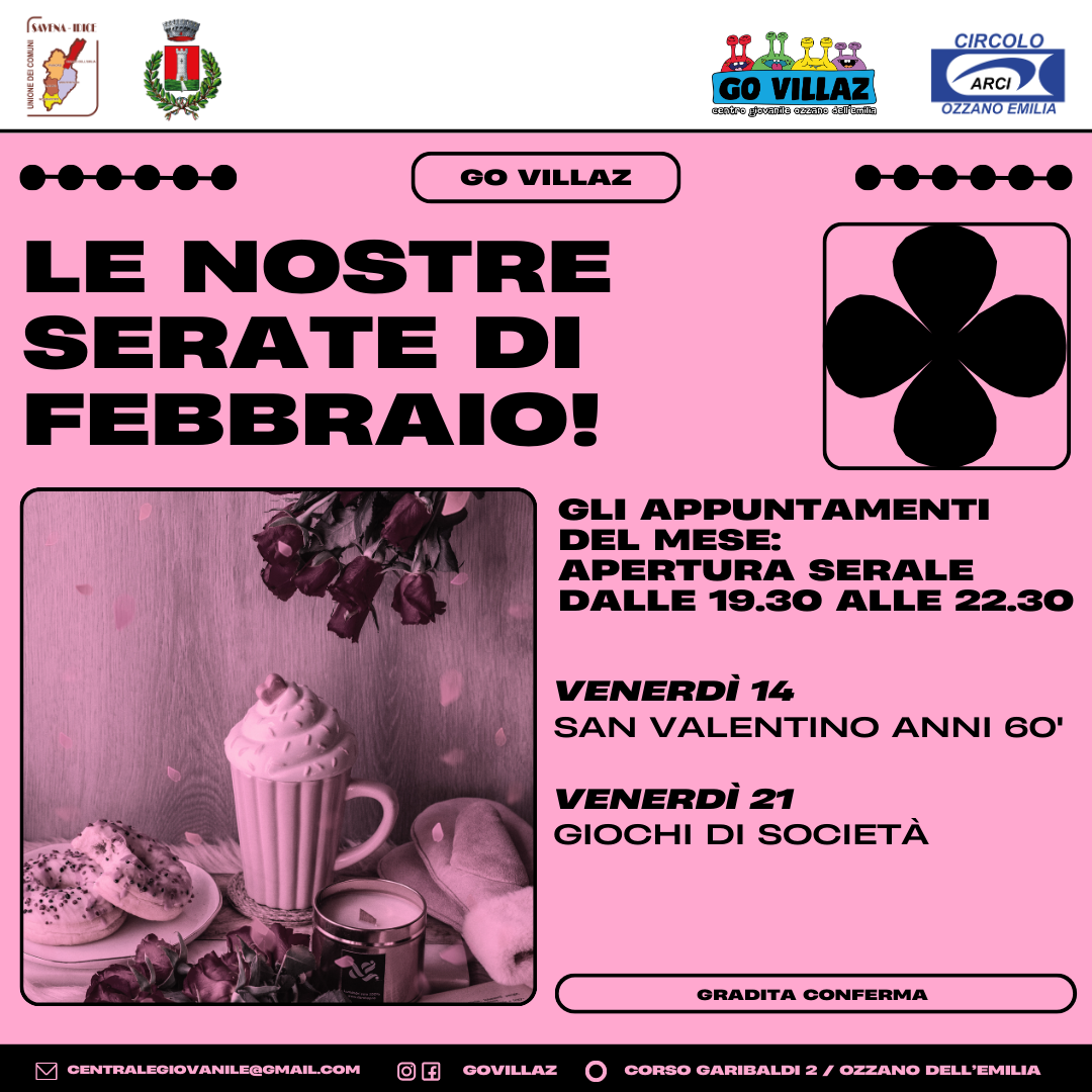 Il Centro giovanile di Ozzano (Go Villaz) apre in orario serale nei venerdì di febbraio, dalle 19,30 alle 22,30 presso la sede di Corso Garibaldi, 2 (Centro sociale A. Gramsci):