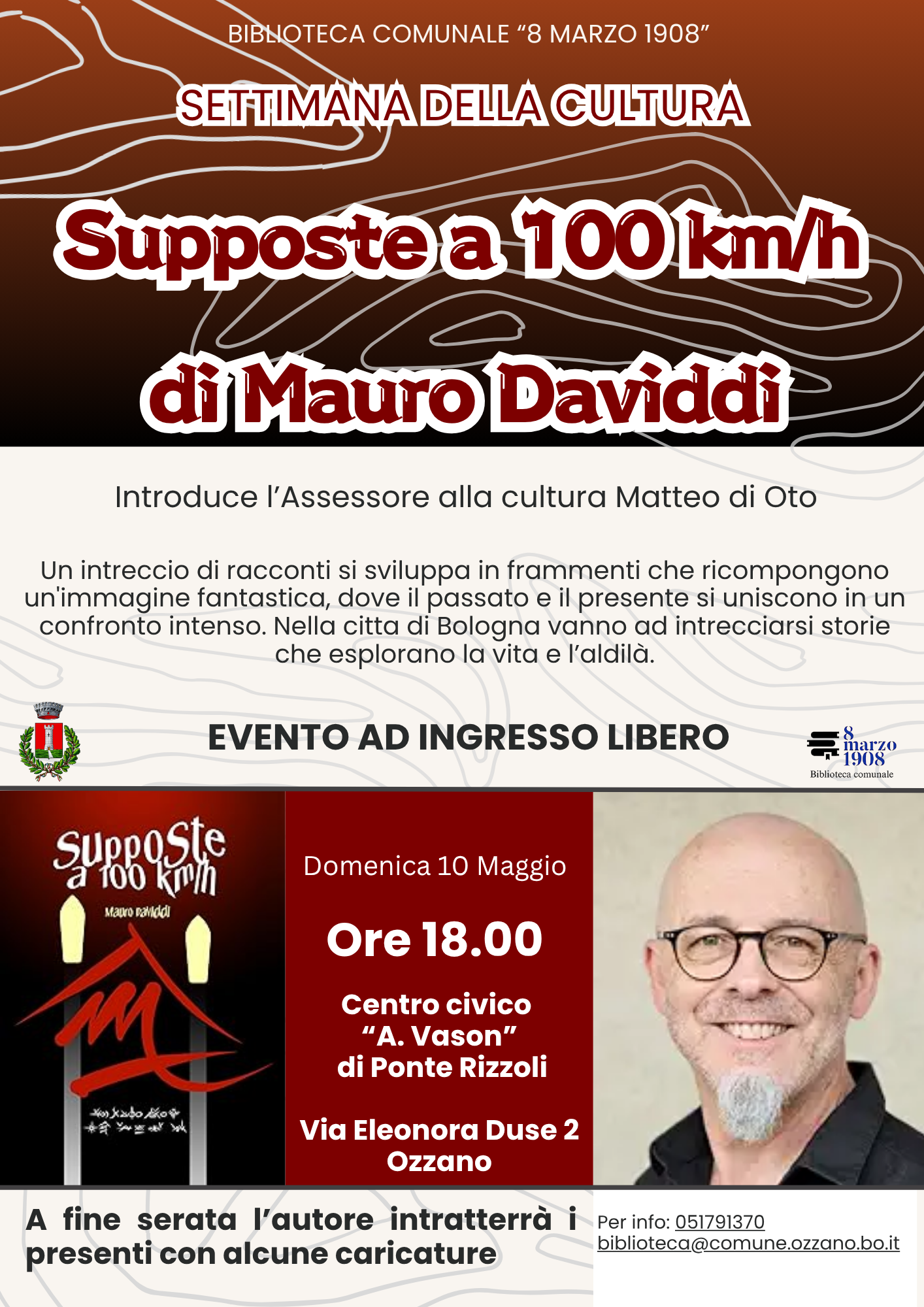 10 - ore 18: Mauro Daviddi presenta il suo libro "Supposte a 100 km/h": nella città di Bologna si intrecciano storie sulla vita e sull'aldilà - Centro civico Ponte Rizzoli