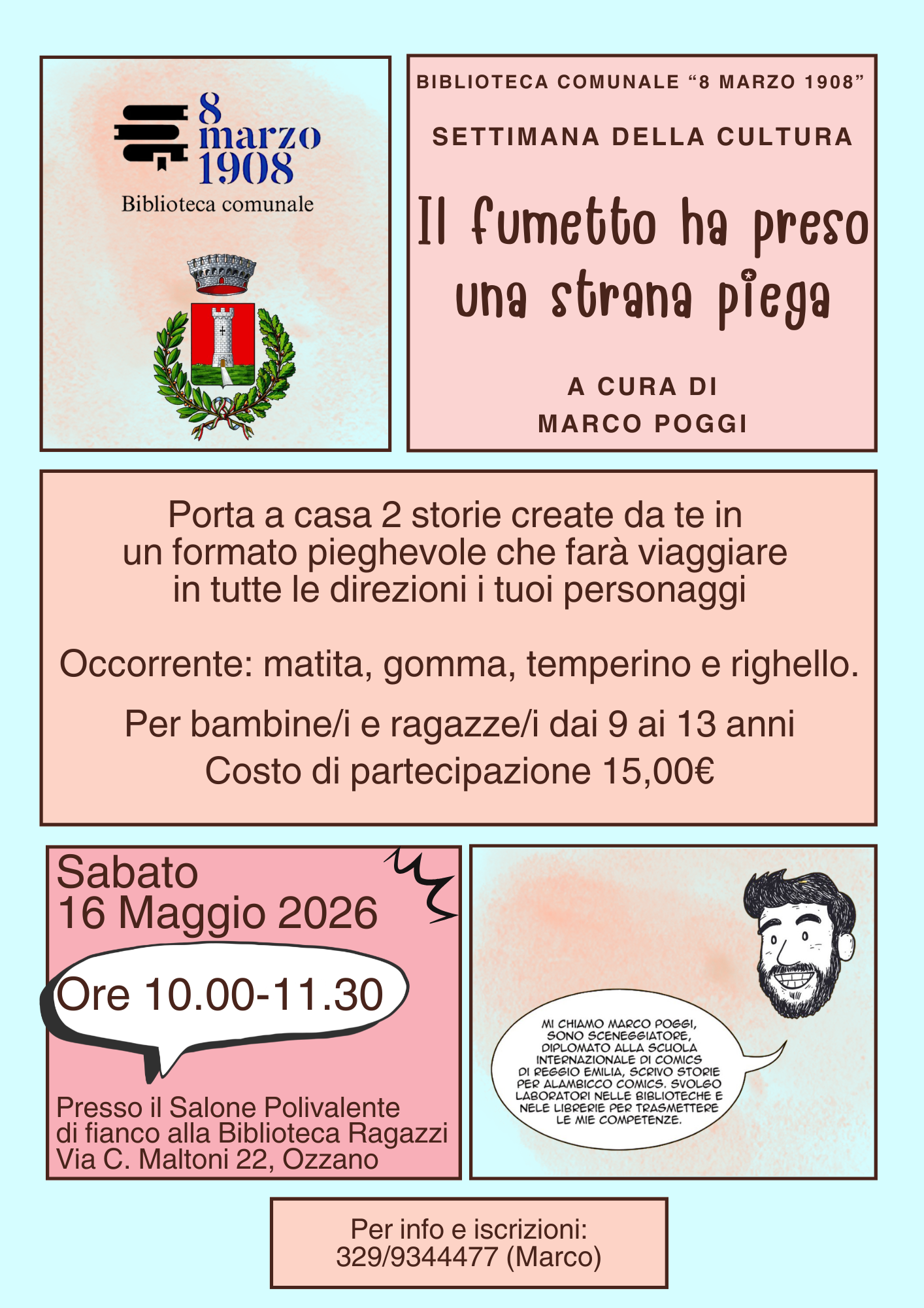 16 - ore 10 "Il fumetto ha preso una brutta piega" laboratorio con Marco Poggi - Palazzo della Cultura