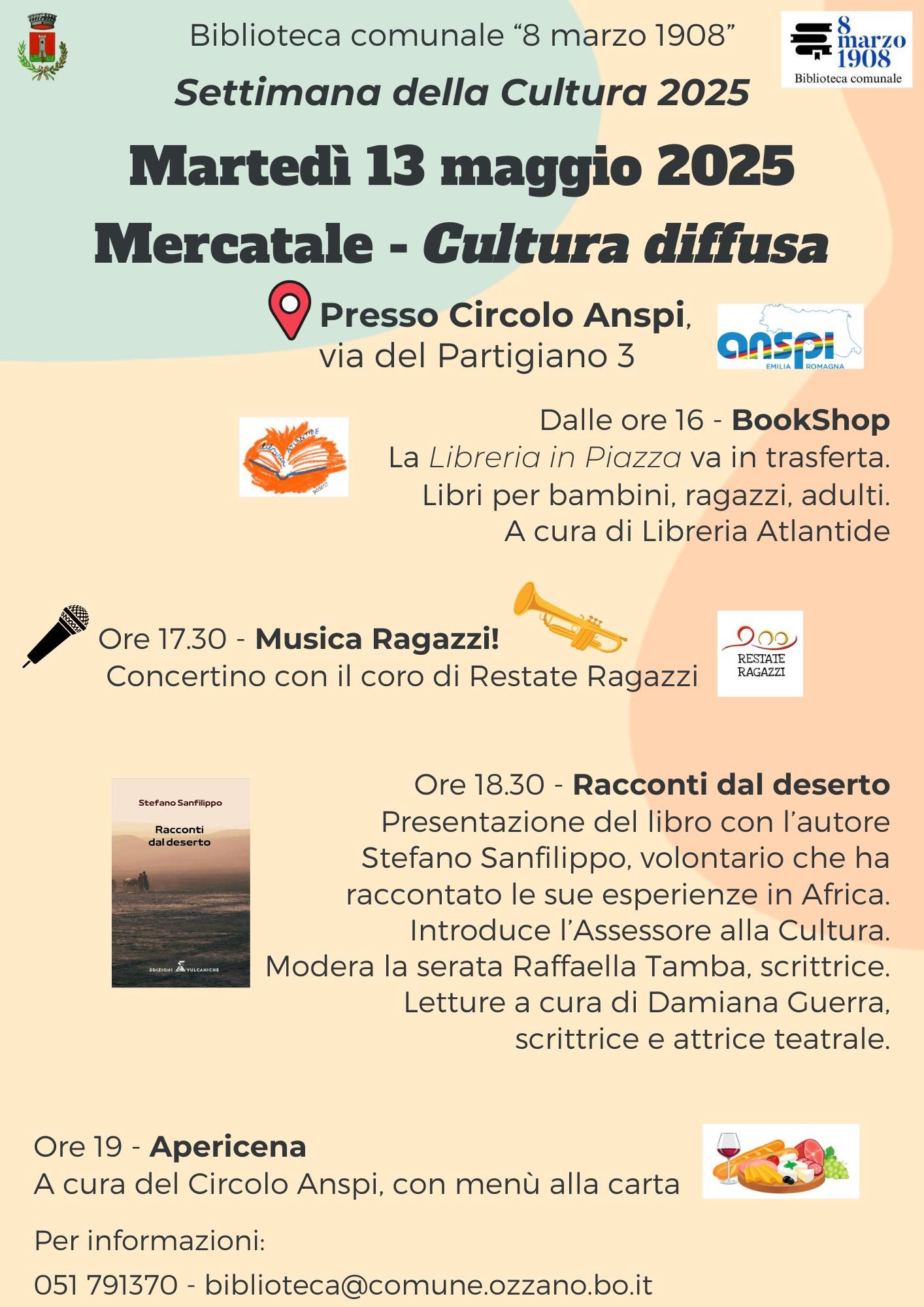 Il programma prevede laboratori, bookshop, presentazioni di libri e intrattenimenti per grandi e piccini organizzati dall’Amministrazione comunale, dalla Biblioteca, dall’Istituto comprensivo di Ozzano, dal Museo della Città romana di Claterna oltre che dalla preziosa collaborazione di molte Associazioni del territorio (ARTinCIRCO FESTIVAL, Associazione "Gruppo Musicale" di Ozzano dell'Emilia, Ote Compagnia le Saracinesche, Restate Ragazzi Mercatale, IL PONTE aps, Circolo Anspi Mercatale, Arci Ozzano) e Libreria Atlantide.