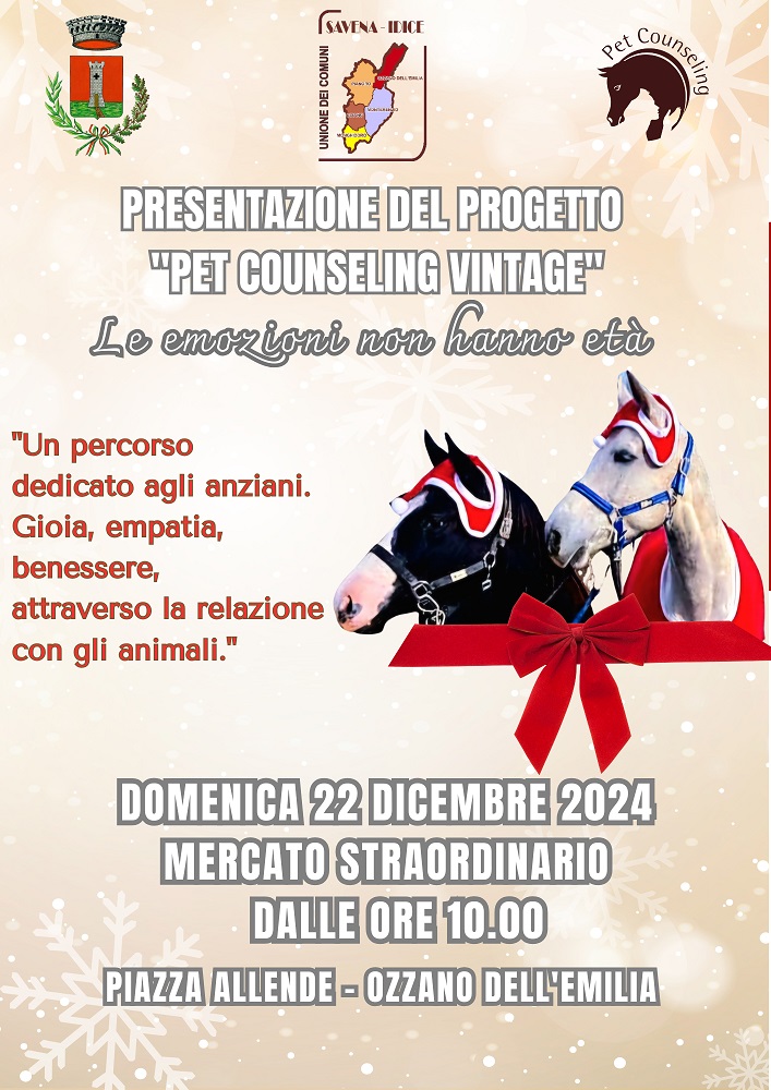 Per l'occasione, verrà anche presentato al pubblico il progetto di Pet counseling Vintage, (a cura del Bologna Equestrian Center via Olmatello Ozzano) un percorso dedicato agli anziani che, attraverso il contatto col cavallo, possono ritrovare benessere e gioia.