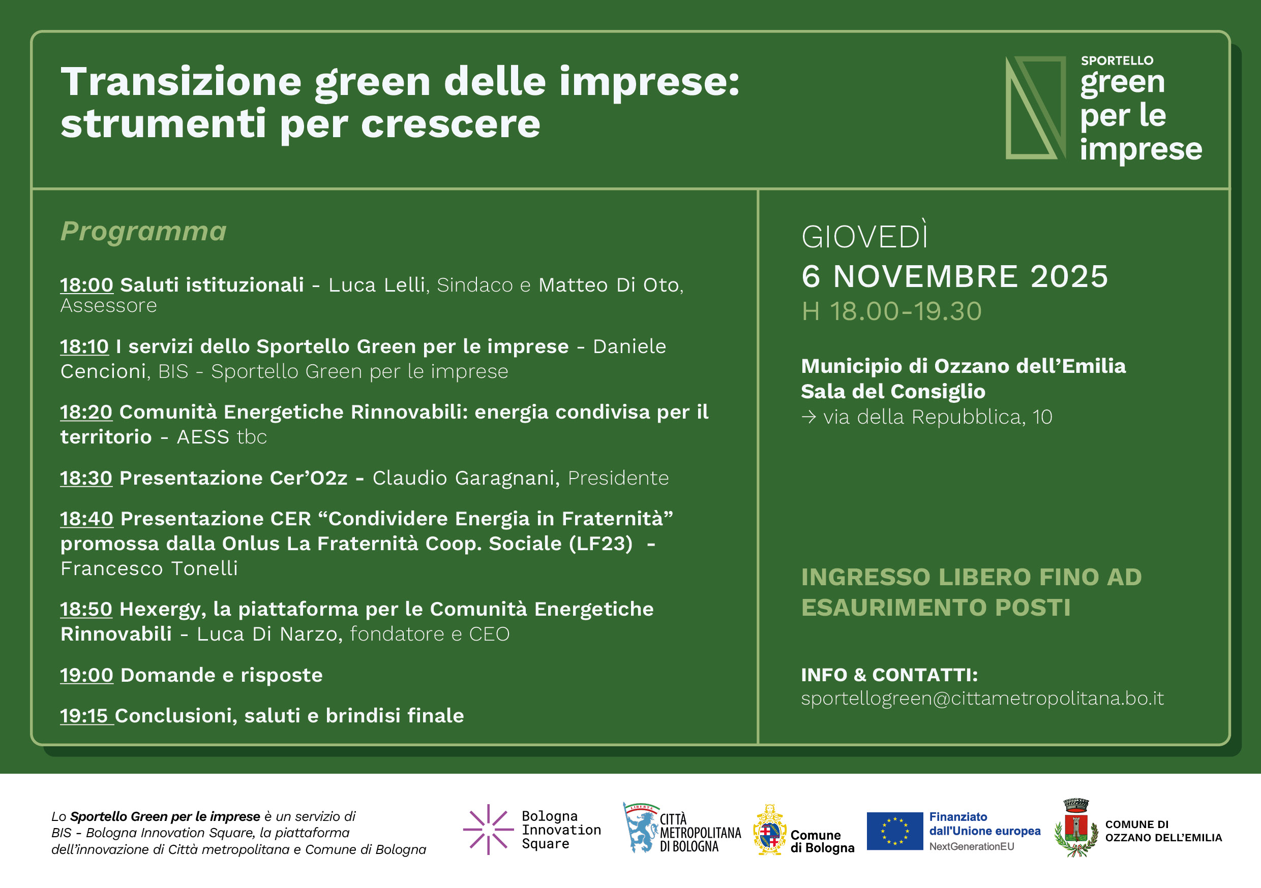 Lo Sportello Green per le imprese è un servizio di BIS - Bologna Innovation Square, la piattaforma