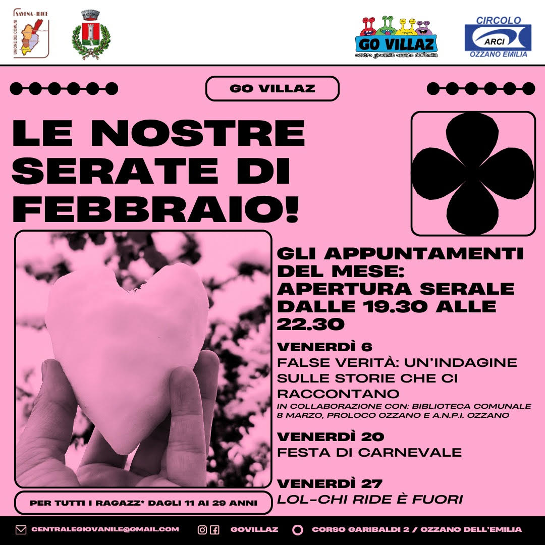 Il Centro giovanile di Ozzano (Go Villaz) apre in orario serale nei venerdì di febbraio, dalle 19,30 alle 22,30 presso la sede di Corso Garibaldi, 2 (Centro sociale A. Gramsci):