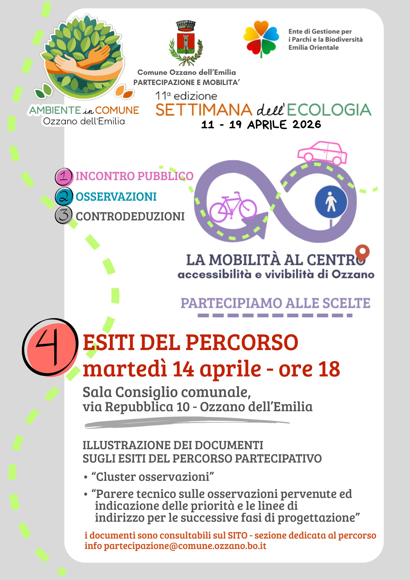Il 14 e il 15 aprile, in Municipio, due momenti di condivisione degli esiti dei progetti partecipativi: “Mobilità al centro” (ore 18) e “Dialoghi in frazione” (ore 18,30).