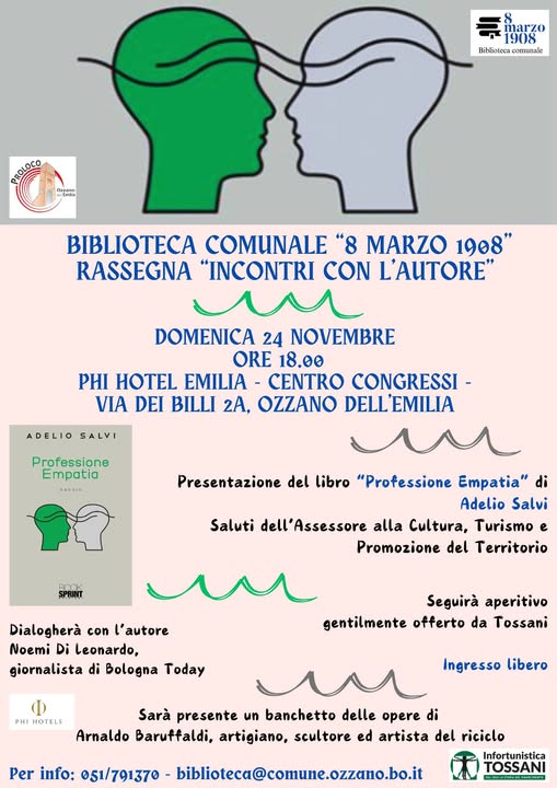 La Biblioteca di Ozzano ospita il concittadino Adelio Salvi, che racconterà il suo percorso professionale di consulente/infortunologo attraverso il libro "Professione Empatia".