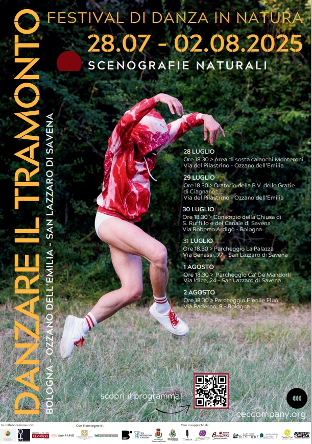 L’edizione 2025 si snoda attraverso i territori del parco dei Gessi Bolognesi e Calanchi dell’Abbadessa che toccano i territori di Ozzano Emilia, San Lazzaro di Savena e Bologna, invitando il pubblico a percorrere itinerari naturali accompagnati da una guida ambientale esperta, per poi lasciarsi sorprendere al calar del sole e in luoghi inusuali, da spettacoli di danza, i cui titoli quest’anno resteranno segreti fino all’ultimo.