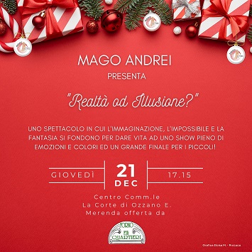 Il Mago Andrei presenta lo spettacolo "REALTA' O ILLUSIONE?" al Centro Commerciale La Corte. Spettacolo di magia con un gran finale per i più piccoli.