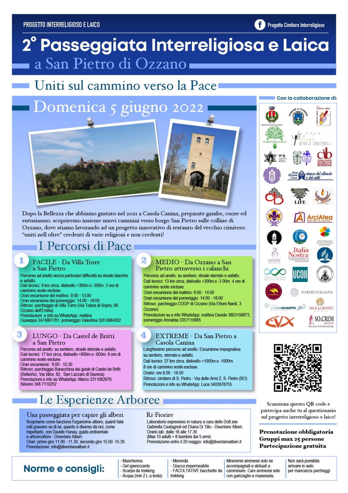 Il progetto partecipato "Le chiavi di San Pietro", promosso nel 2021 dall'Amministrazione Comunale, non aveva solo l'ambizione di valorizzare il borgo, ma anche di accreditarsi come luogo di una comunità accogliente e aperta alle altre culture. Per questo, venne proposto, in maniera naturale, dai cittadini e dalle associazioni che presero parte al progetto, di destinare il cimitero della frazione alle confessioni religiose diverse dal cattolicesimo, come pure alle sepolture laiche. Nel solco di questa indicazione, domenica 5 giugno, verrà organizzata una "Passeggiata interreligiosa e laica" con diversi percorsi escursionistici e un'ulteriore passeggiata di carattere ambientale denominata "Per capire gli alberi". All'iniziativa hanno aderito enti pubblici, associazioni di ispirazione laica e cristiana.