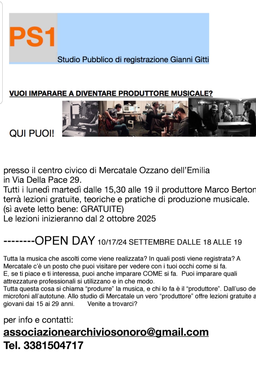 L'Associazione Archivio sonoro APS, guidata da Marco Bertoni, propone tre giornate di Open Day per avviare alla professione di programmatore musicale.