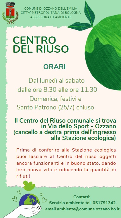 Il Centro del Riuso comunale di Ozzano dell'Emilia è tra i primi a essere stato realizzato, oltre a essere tra i pochi presenti in Regione, risultando un prezioso servizio a disposizione della cittadinanza.