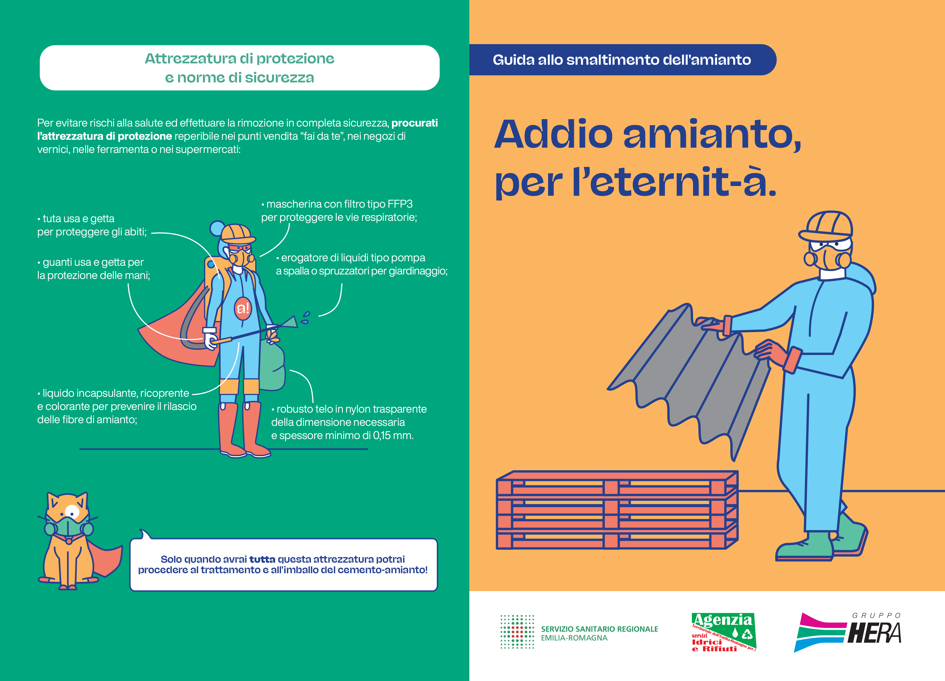 Il cemento-amianto (noto anche come eternit) è inquinante e pericoloso per la salute, e spesso ce l’abbiamo in casa. L’eternit, utilizzato in edilizia in prevalenza per coperture, serbatoi e canne fumarie, è un composto di cemento e fibre di amianto. Se è integro, l’eternit in sé non è pericoloso; lo diventa quando inizia a sgretolarsi per l’azione degli agenti atmosferici, liberando fibre dannose per la salute e l’ambiente. Nel rispetto di quanto indicato nella D.G.R. 1071 del 1/7/2019, le utenze domestiche possono richiedere lo smaltimento gratuito di manufatti in amianto se titolari di TARI/TCP attiva per l'immobile di riferimento per un massimo di 500 kg/anno