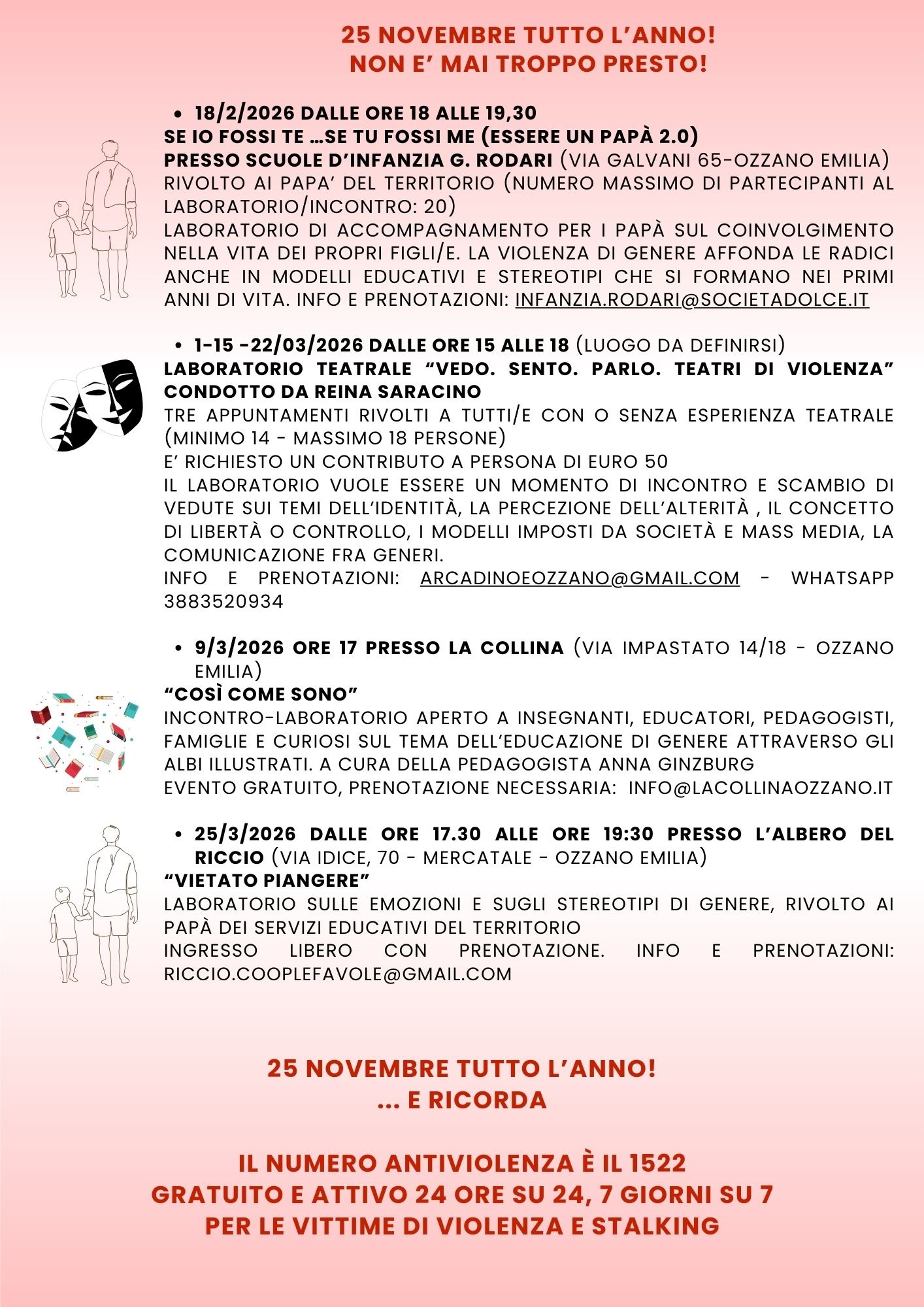 L'evento del 9 marzo è l'ultimo appuntamento della rassegna "Non è mai troppo presto!" che ha avuto inizio il 25 novembre 2025 (in occasione della Giornata internazionale contro la violenza sulle donne) e proseguita il 2 ottobre nel 2026 su educazione affettiva con appuntamenti ed attività, in vari ambiti: