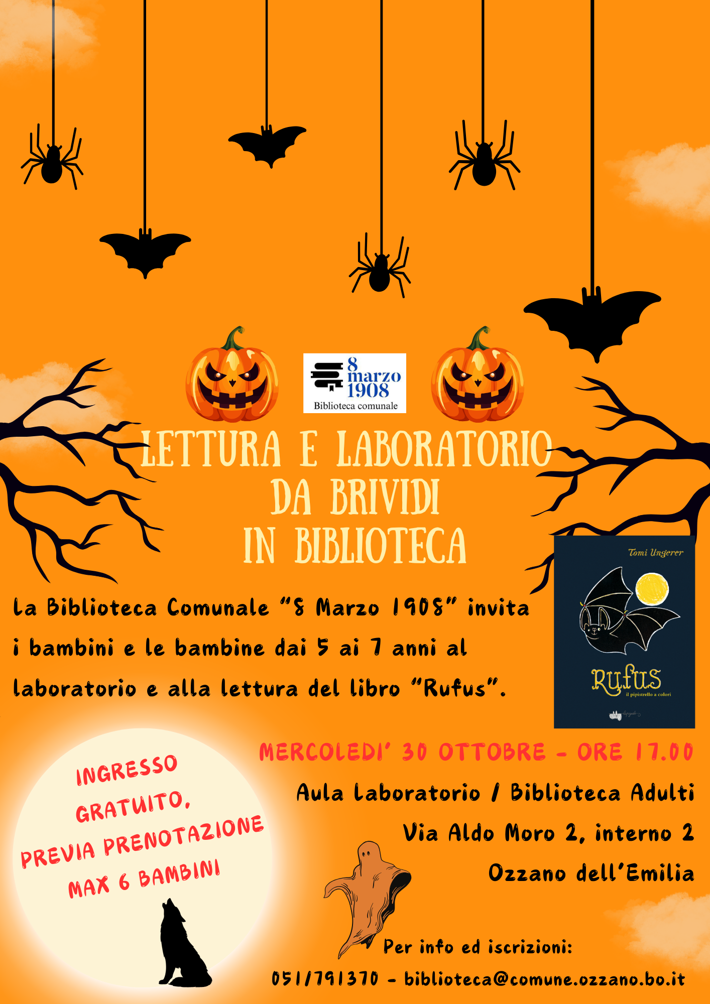 30 ottobre ore 17 - Lettura e laboratorio da brividi (aula laboratori, via Aldo Moro 2)