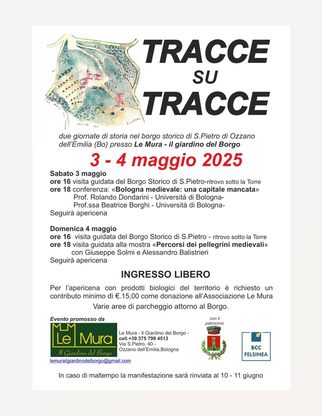 ore 16 visita guidata del Borgo Storico di S.Pietro - ritrovo sotto la Torre ore 18 visita guidata alla mostra «Percorsi dei pellegrini medievali» con Giuseppe Solmi e Alessandro Balistrieri