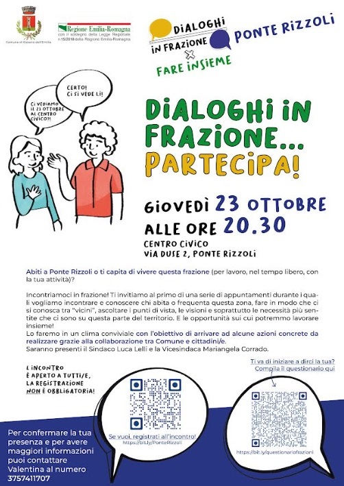 Percorso partecipato Dialoghi in frazione: il 14 e 23 ottobre i primi incontri a Mercatale e Ponte Rizzoli