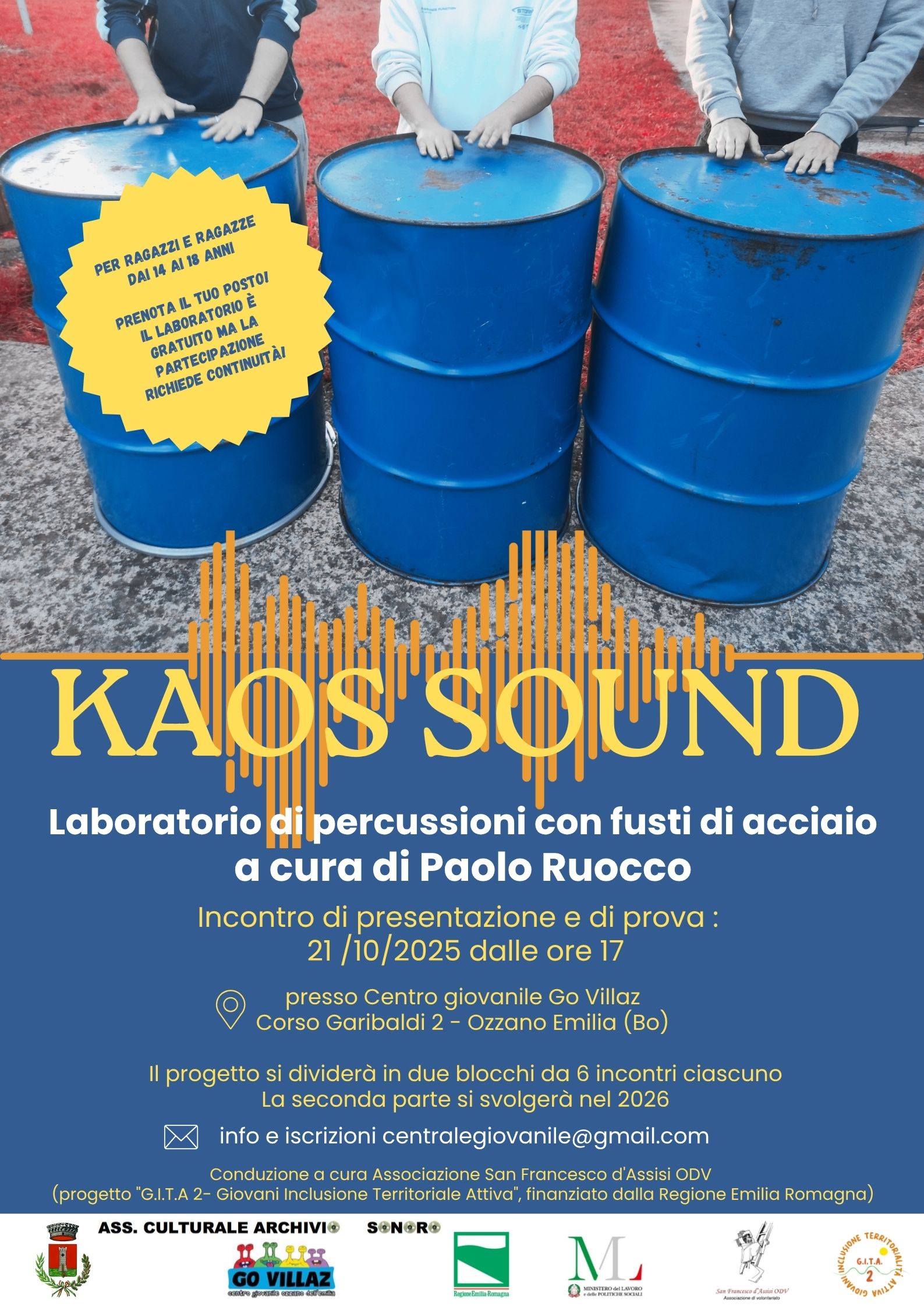 Laboratorio di percussioni con fusti in acciaio a cura di Paolo Ruocco (per ragazzi /e dai 14 anni ai 18 anni)