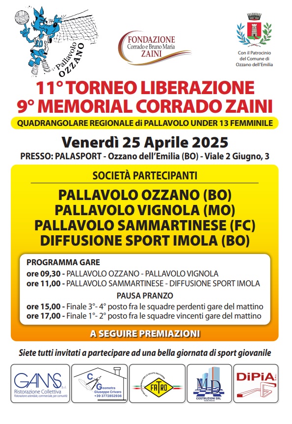 11° Torneo Liberazione – 9° Memorial Corrado Zaini - Quadrangolare di Pallavolo Under 13 femminile.
