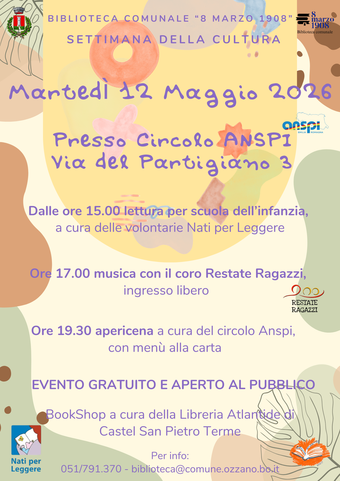 9-18 maggio 2026: Al via a Ozzano la Settimana della Cultura e Festa del Libro