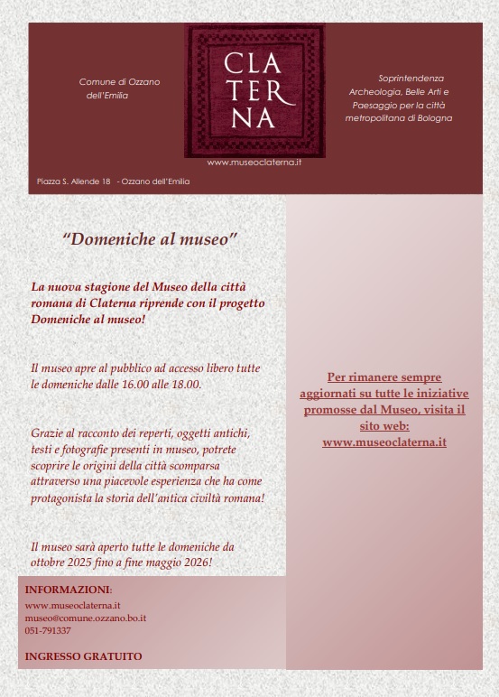 La nuova stagione del Museo della città romana di Claterna riprende con il progetto “Domeniche al museo”!