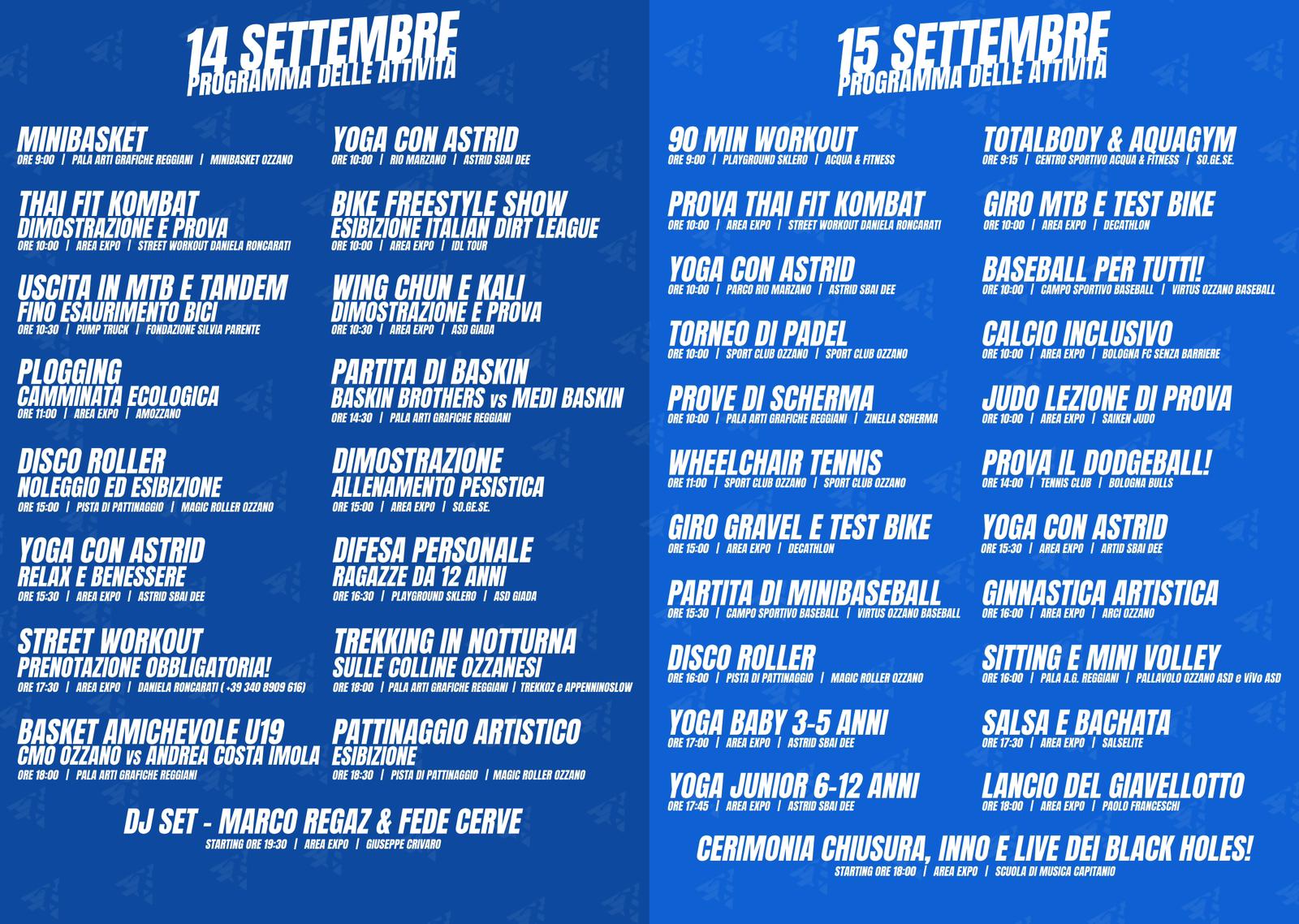Ti aspettiamo il 14 e il 15 Settembre per la Festa dello Sport di Ozzano dell’Emilia!