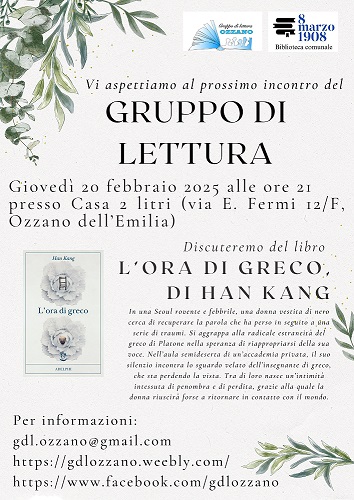 Presentazione libro di Han Kang "L'ora di greco" (Adelphi), a cura del Gruppo di Lettura della Biblioteca