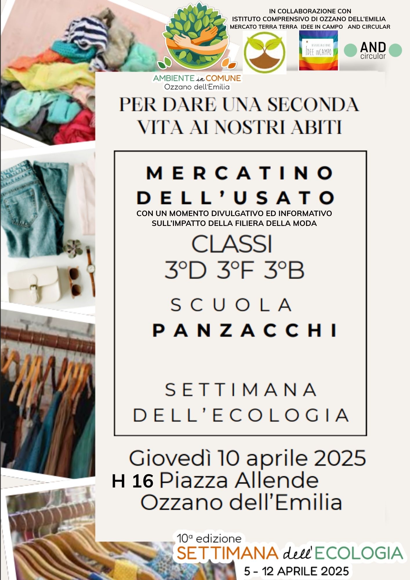 - dalle ore 16 in Piazza Allende - Mercato Terra Terra: Mercatino dell'usato (da un'idea della docente di Arte prof.Rosati ed in collaborazione con le classi 3B,3D e 3F della Scuola media Panzacchi -Istituto comprensivo di Ozzano, Idee in Campo e AndCircular) con un momento divulgativo ed informativo sull'impatto della filiera della moda.