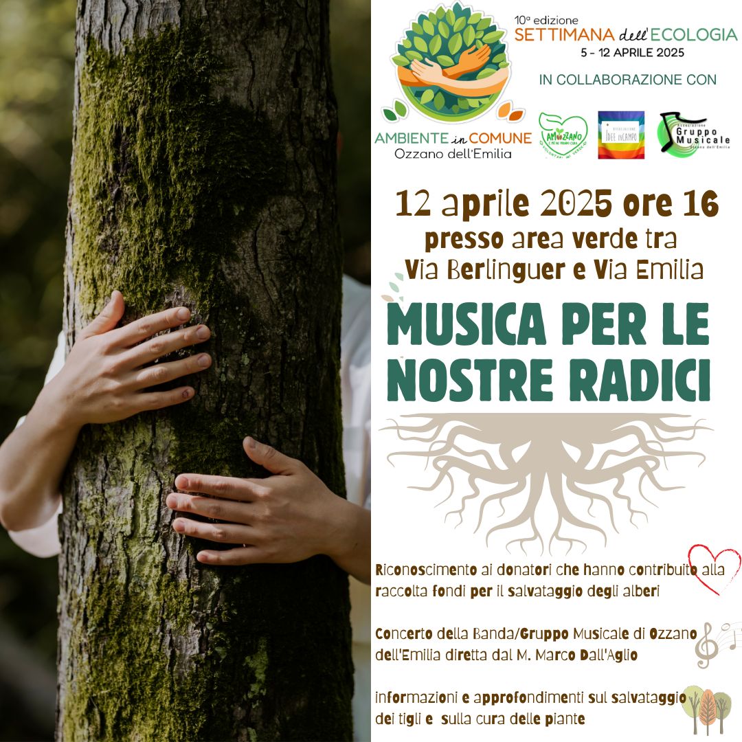Concerto della Banda/Gruppo Musicale di Ozzano dell'Emilia diretta dal M. Marco Dall'Aglio; informazioni e approfondimenti sul salvataggio dei tigli e sulla cura delle piante.