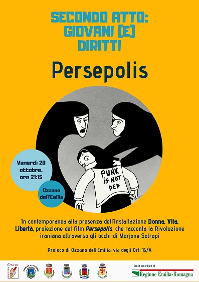 Per completare l’intervento di sensibilizzazione della comunità ozzanese alla lotta per la libertà ed emancipazione civile e sociale in corso in Iran, sarà organizzata venerdì 20 ottobre la proiezione pubblica del film Persepolis, in occasione della Giornata Mondiale della non violenza.