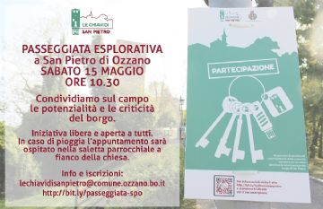 Martedì 22 giugno dalle 18 alle 20 nell’area verde nei pressi della Torre del borgo di San Pietro di Ozzano, si terrà il prossimo appuntamento del percorso partecipativo "Le Chiavi di San Pietro".